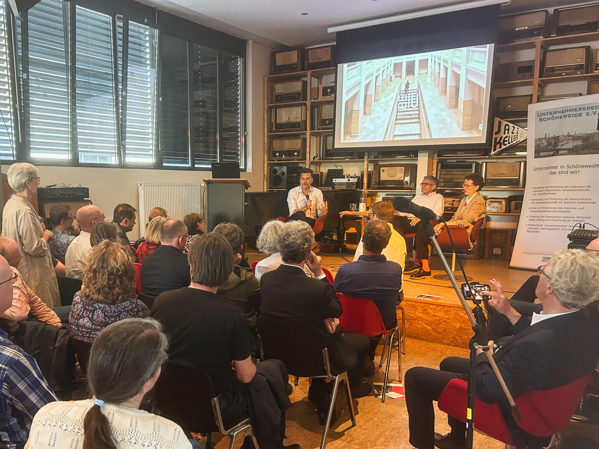 Im Mittelpunkt des Schöneweider Salongesprächs stand dieses Mal die Entwicklung des Behrens-Ufers und dessen Bedeutung als Zukunftsquartier für den Bezirk Schöneweide.
